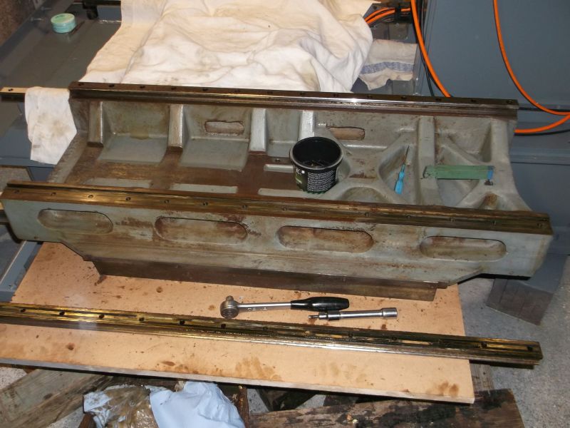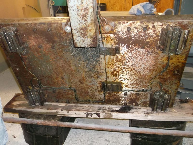 Spodná časť stola.Koľajnice nie sú viditeľne poškodené, ale vozíky sú so zaschnutými guličkami.