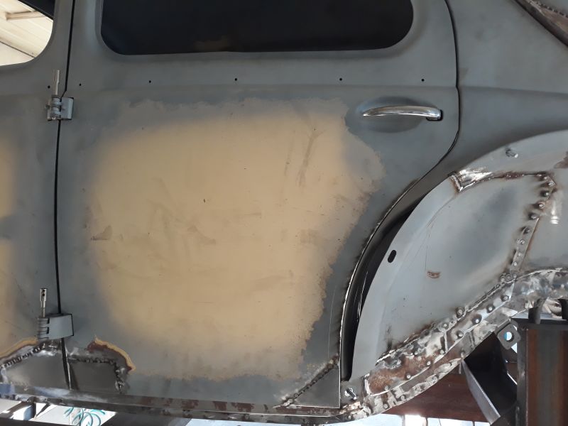 Hneď som sa dal do opravy druhej strany. Tu mením celý pás na vonkajšom opláštení dverí. |